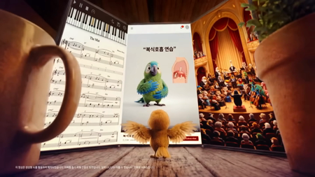 성악가가 되고 싶은 새의 모습으로 광고하는 게 참신했습니다