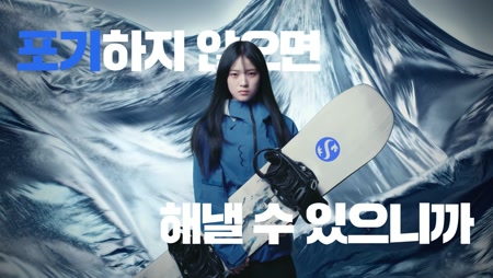 스노우보드 선수님의 스토리를 기사로 봐서 알고 있었는데 카피문구와 잘 맞는 거 같다.