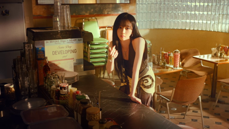 - 카리나가 피자로부터 시선을 사로잡는다. 광고 마지막 슬로건이 없었다면 무슨 피자 광고였는지 몰랐을 것이다.