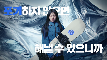 - 스노우보드 선수님의 스토리를 기사로 봐서 알고 있었는데 카피문구와 잘 맞는 거 같다.